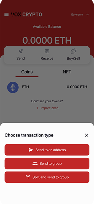 Send crypto to unlimited recipients for a single gas fee, plus transaction fee.